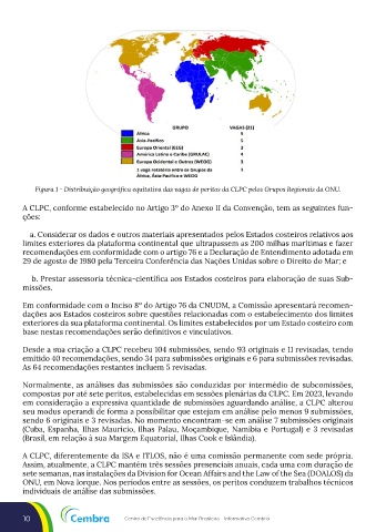 Figura 1 - Distribuição geográfica equitativa das vagas de peritos da CLPC pelos Grupos Regionais da ONU.