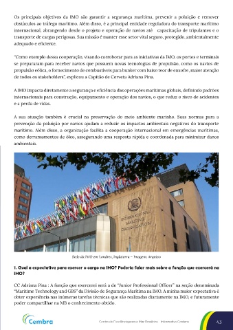 1. Qual a expectativa para exercer o cargo na IMO? Poderia falar mais sobre a função que exercerá na