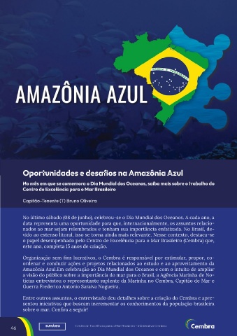 46 SUMÁRIO Centro de Excelência para o Mar Brasileiro - Informativo Cembra