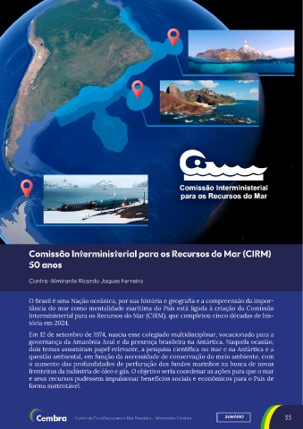 Interministerial para os Recursos do Mar (CIRM), que completou cinco décadas de his-