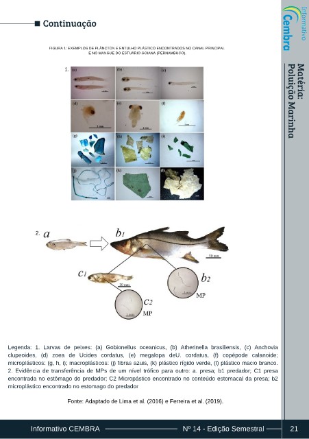 Legenda: 1. Larvas de peixes: (a) Gobionellus oceanicus, (b) Atherinella brasiliensis, (c) Anchovia