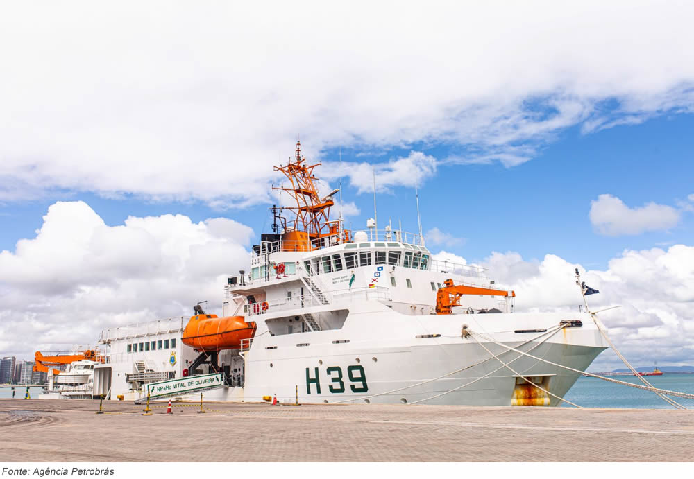O Navio “Vital de Oliveira” é uma moderna plataforma de pesquisa marítima, construída para identificar e registrar, detalhadamente, os recursos naturais existentes em águas brasileiras Pesquisadores da Petrobras, do Serviço Geológico do Brasil (SGB) e