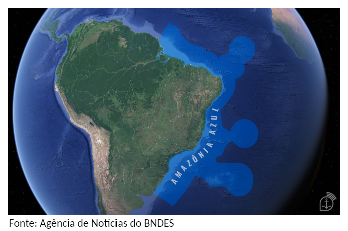 Com a evolução dos entendimentos internacionais sobre fronteiras aquáticas, o Brasil assumiu soberania em uma vasta área nas bacias marítimas, denominada Amazônia Azul. Essa expressão, cunhada pela Marinha, destaca