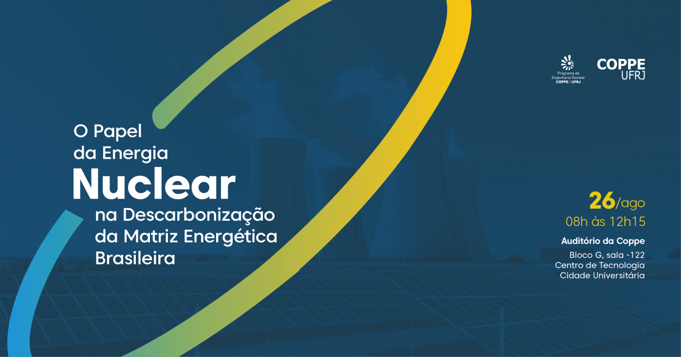 Temos o prazer de convidá-los para o evento “O Papel da Energia Nuclear na Descarbonização da Matriz Energética Brasileira”, que acontecerá no dia 26 de agosto de 2025, das 9h00 às 12h15, no Centro de Tecnologia da UFRJ (CT1), Bloco G, Auditório G-122, Rio de Janeiro - RJ.