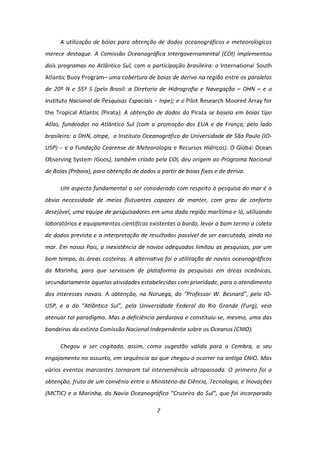 (MCTIC) e a Marinha, do Navio Oceanográfico “Cruzeiro do Sul”, que foi incorporado