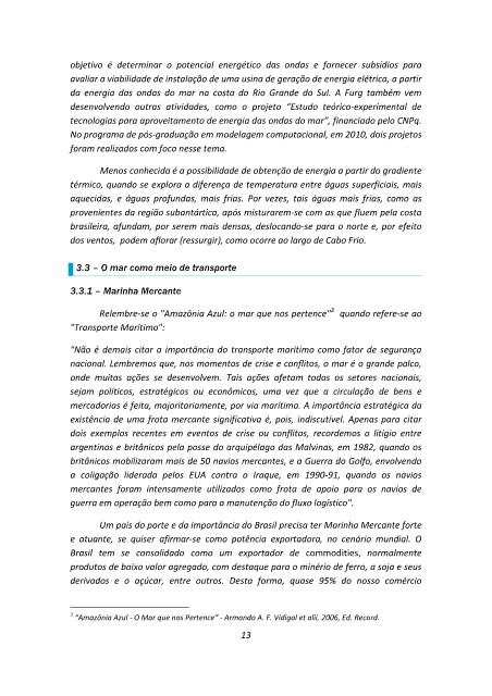 3 “Amazônia Azul - O Mar que nos Pertence” - Armando A. F. Vidigal et alii, 2006, Ed. Record.