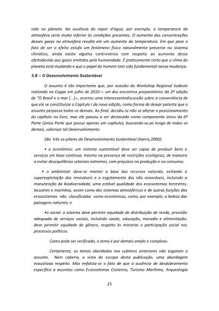 específico a assuntos como Ecossistemas Costeiros, Turismo Marítimo, Arqueologia