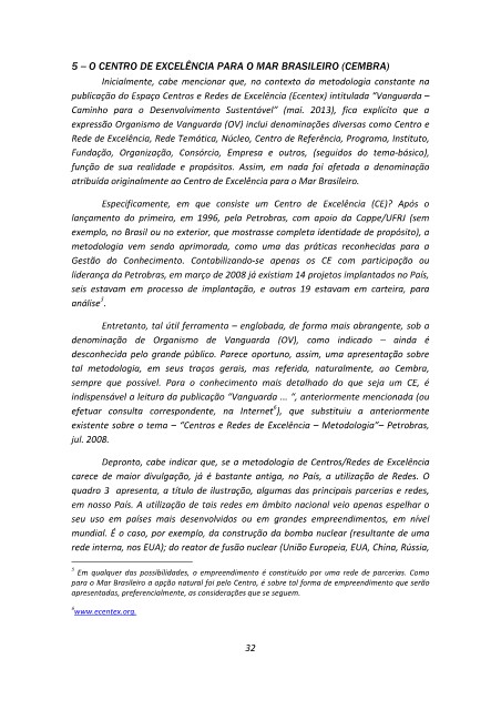 existente sobre o tema – “Centros e Redes de Excelência – Metodologia”– Petrobras,