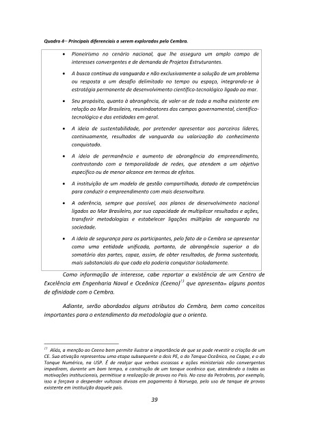Excelência em Engenharia Naval e Oceânica (Ceeno) que apresentam alguns pontos
