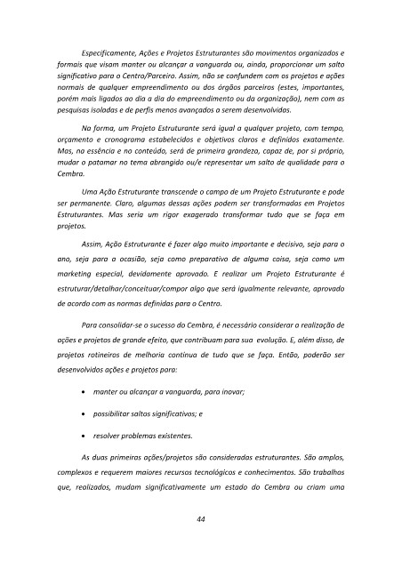 significativo para o Centro/Parceiro. Assim, não se confundem com os projetos e ações