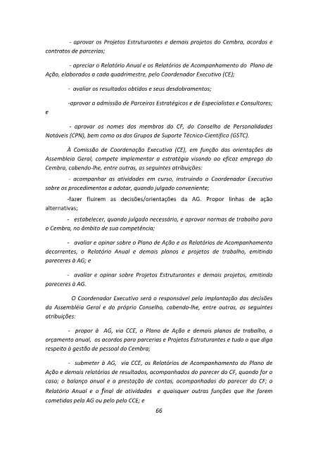 - aprovar os Projetos Estruturantes e demais projetos do Cembra, acordos e