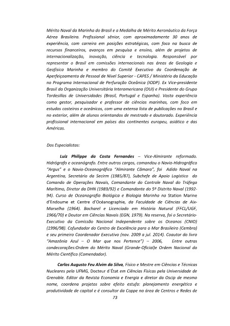 estudos costeiros e oceânicos, com uma extensa lista de publicações no Brasil e