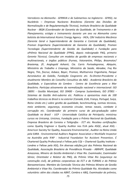Sênior, Orientador e Relator do PNQ, do Prêmio Vitae Rio (segurança na