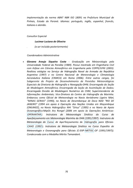 Informações Ambientais; Vice-Diretora do Centro de Hidrografia da Marinha.