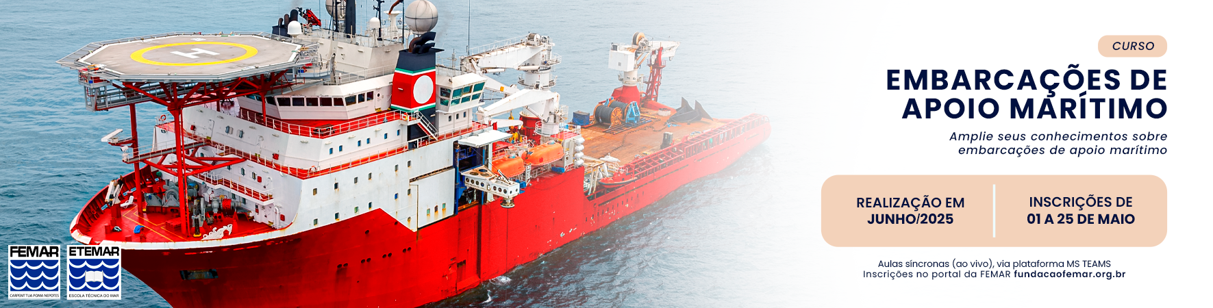 O Curso Embarcações de Apoio Marítimo (EMBAPO) visa proporcionar ao aluno os conhecimentos básicos sobre as embarcações empregadas no apoio marítimo.